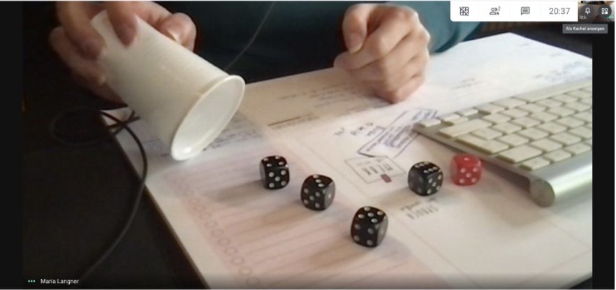 Außerdem haben wir 2021 die Tradition unserer gemeinsamen Online-Spieleabende fortgesetzt und sind mit “Kniffel” ins Jahr gestartet. Dabei haben wir herausgefunden, dass manche Glückskinder zuverlässig in jeder Runde ein Kniffel abliefern. Wir hatten einen sehr lustigen, vergnügten Abend!